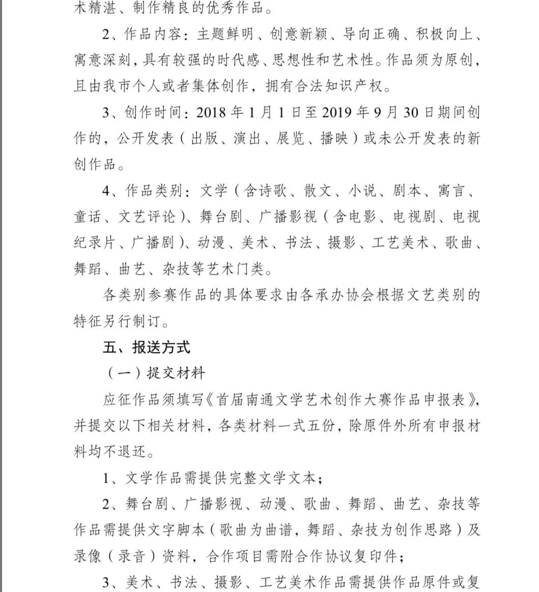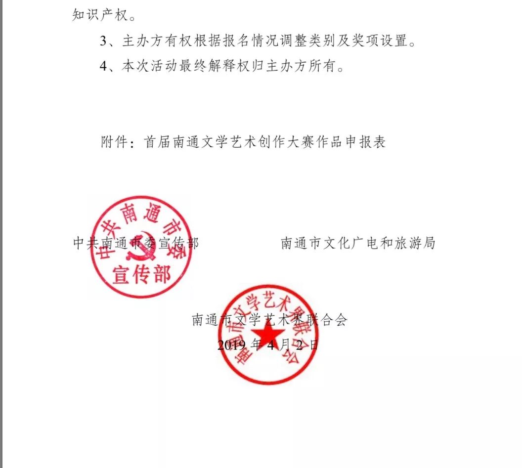 附:《關于舉辦首屆南通文學藝術創作大賽的通知》文件