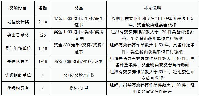 作品獎(jiǎng)項(xiàng)設(shè)置,詳請見下表: