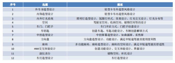 命題名稱:全新一代輕卡造型設計命題(江鈴汽車股份有限公司)