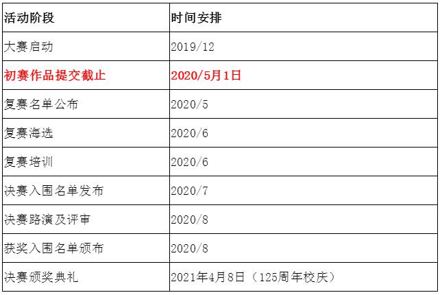 4.初賽作品提交截止日期為2020年5月6日(因假期可最遲于5月6日前提交);